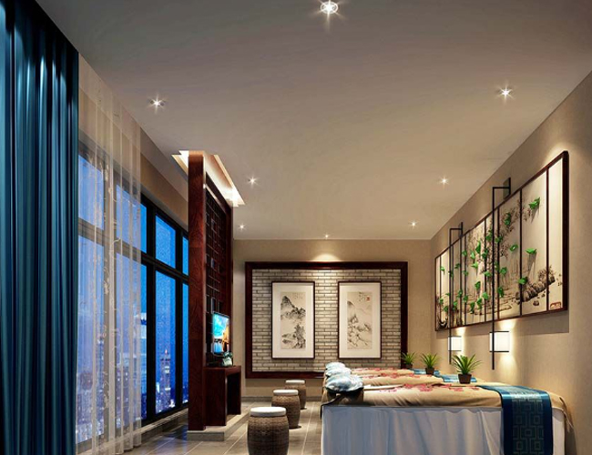 摩室布置得温馨而宁静,使用舒缓的色彩和柔和的灯光,让顾客在享受按摩服务时能够完全放松。